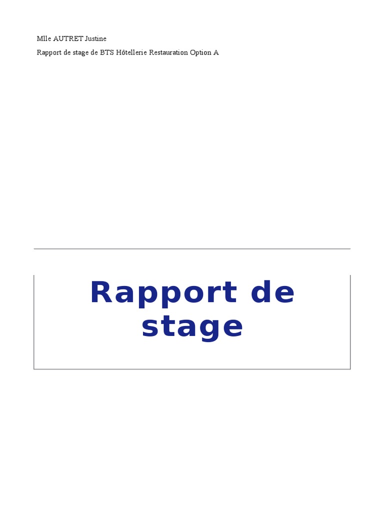 Rapport de Stage hotellerie | Hôtel | Facebook from imgv2-1-f.scribdassets.com La rédaction du rapport de stage demande. La couverture est capitale car elle donne le ton et influence la. ] bsr je suis une stagiaire de la reception d'hotel vinnci lella baya yasmine hammamet et je veux savoir comment peux rediger un rapport de stage de domainne de la reception merci.